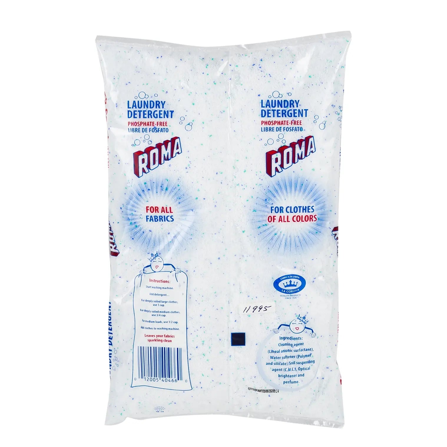 Roma Powder Detergent is a heavy-duty, biodegradable formula that is tough on stains but gentle on the environment. This multi-purpose detergent is not only great for cleaning clothes but can also be used for household floors, tiles, and bathrooms. Its powerful formula effectively removes grease and dirt, leaving your fabrics clean and smelling fresh. This 17.63 oz (500g) bag is budget-friendly and perfect for daily laundry needs. Safe for use in both top-loading and front-loading washing machines.