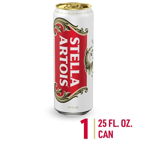 Enjoy the sophisticated taste of Stella Artois, a classic Belgian lager with a rich heritage. Brewed using only the finest natural ingredients—including Saaz hops, malted barley, and water—it offers a floral aroma, a well-balanced malt sweetness, and a crisp, hoppy finish. This large 25 fl oz can provides a premium drinking experience, whether you're pairing it with a fine meal or enjoying it on its own. Best served chilled in its signature chalice or straight from the can.